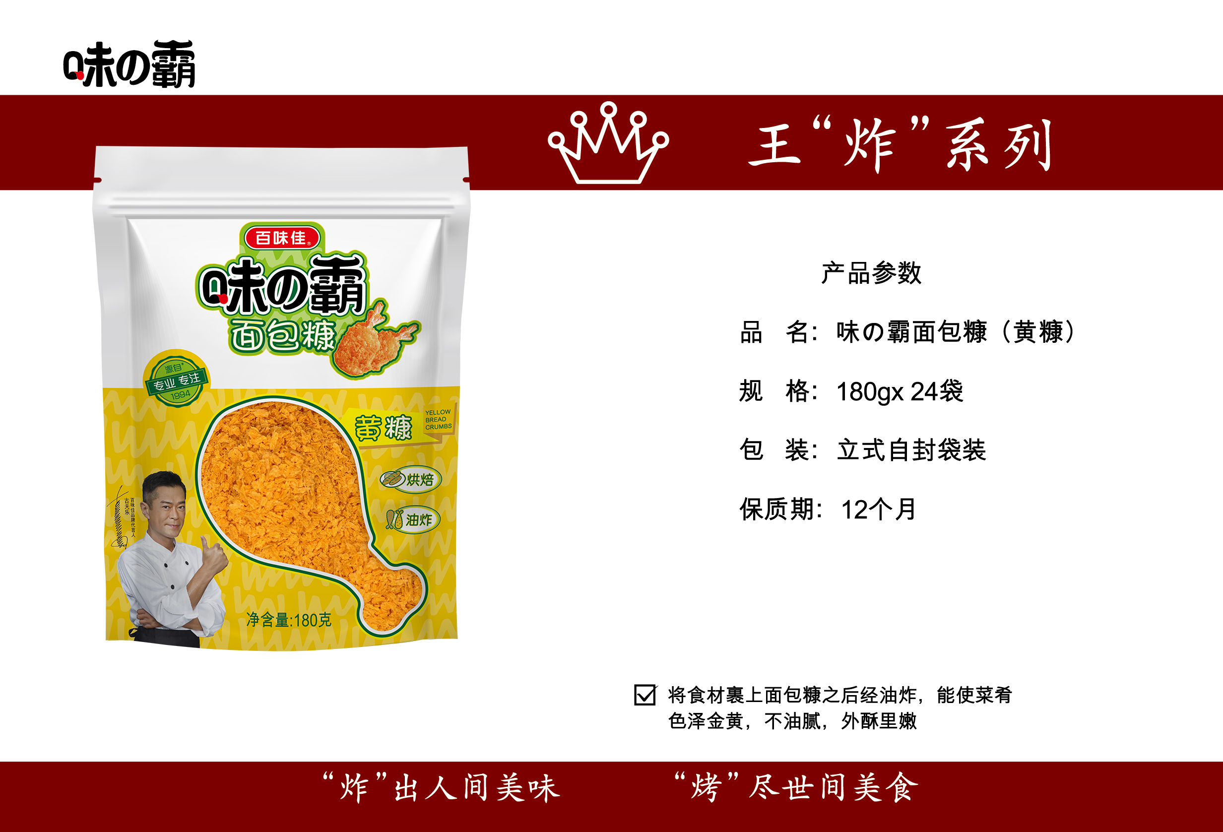 味の霸面包糠(黃糠) 相關(guān)產(chǎn)品: 味の霸面包糠(黃糠) 味の霸胡椒粉2016/07/08 味の霸香脆炸粉2016/07/08 味の霸香辣炸粉2016/07/08 味の霸蒜香炸粉2016/07/08 味の霸面包糠(黃糠)2016/07/08
